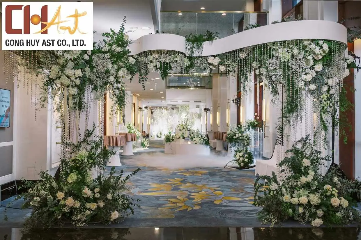 Sảnh đón khách là nơi đầu tiên khách mời đặt chân đến, quyết định cảm xúc và ấn tượng về toàn bộ buổi lễ. Việc lựa chọn dịch vụ trang trí sảnh đón khách tại Công Huy Art sẽ giúp đôi bạn sở hữu không gian đón tiếp sang trọng, dẫn đầu xu hướng năm nay.